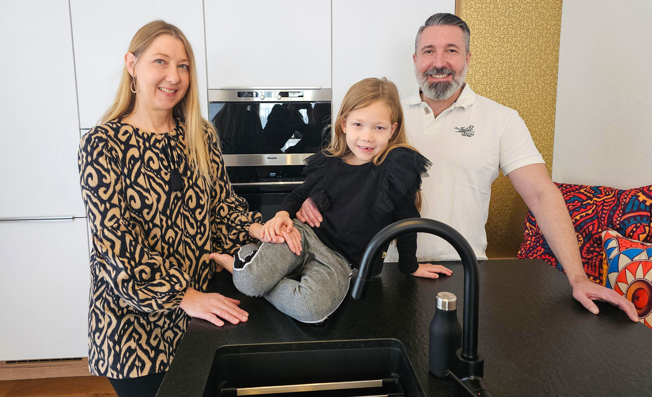 „Wir haben dieses Küchenstudio über die Tageszeitung entdeckt und waren auch schon zu Besuch in der Genusswerkstatt. Die Ausstellung hat uns überzeugt und wir haben Katja Leyhe einfach mal planen lassen. Unsere Bedingung: bitte passend zum Budget. Nach 14 Tagen war der Entwurf fertig und hat uns überrascht und sofort überzeugt. Der Einbau lief total reibungslos – die Monteure arbeiteten millimetergenau. Das Ergebnis – für uns ein Volltreffer. Jetzt haben wir nicht nur eine tolle Küche, sondern auch wunderschönen Wohnraum dazu gewonnen. Unsere Sitzbank wird außerdem gerne als Arbeitsplatz und von unseren lieben Gästen genutzt.“